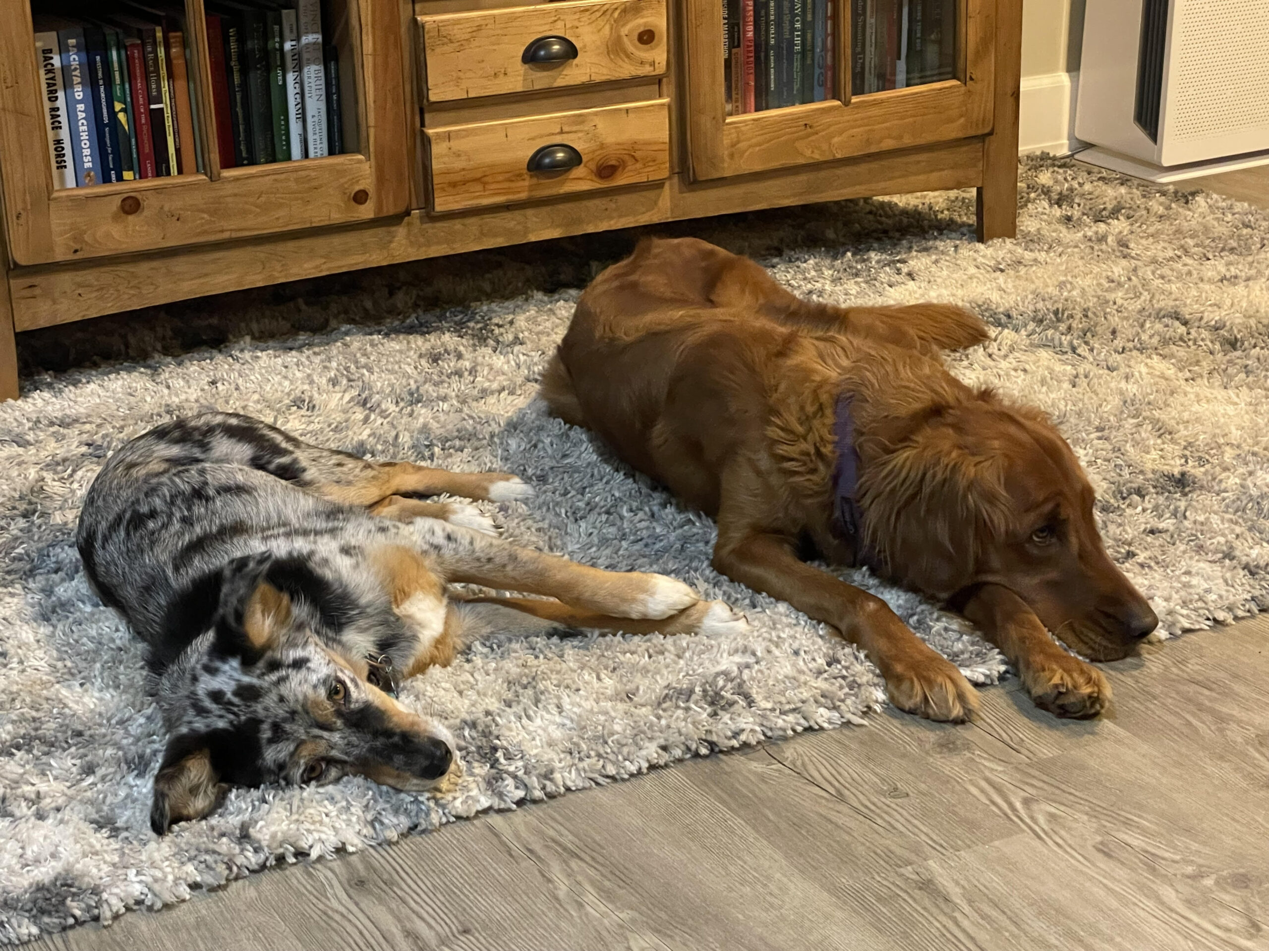 Rosie SH is a high-achieving female (50-55 lbs) with regal looks, vibrant personality, and firepower that sets her apart in the field. Rosie has four passes towards her MH, and needs just ONE more pass to attain the title! We anticipate she’ll earn that this Spring/Summer 2025, and then start working towards agility titles. Rosie lives in the house with us - truly has an "off-switch" inside, and is a pleasure to have as part of our family. Outside she turns it on and is an excellent working dog.