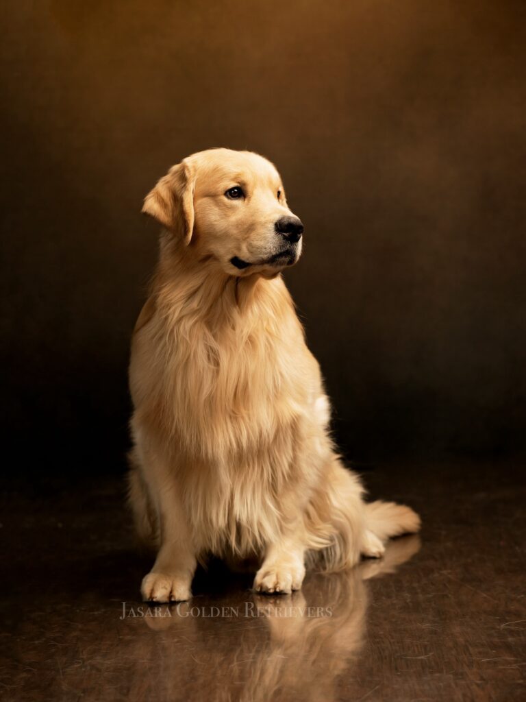 ViKing is a striking blonde dog. He has a magnificent head with a correct broad flat backskull. A wonderful stop leading to a thick square short muzzle and a strong underjaw. ViKing has a perfect scissor bite with full dentition. He has a kind and gentle expression with soft dark brown eyes.