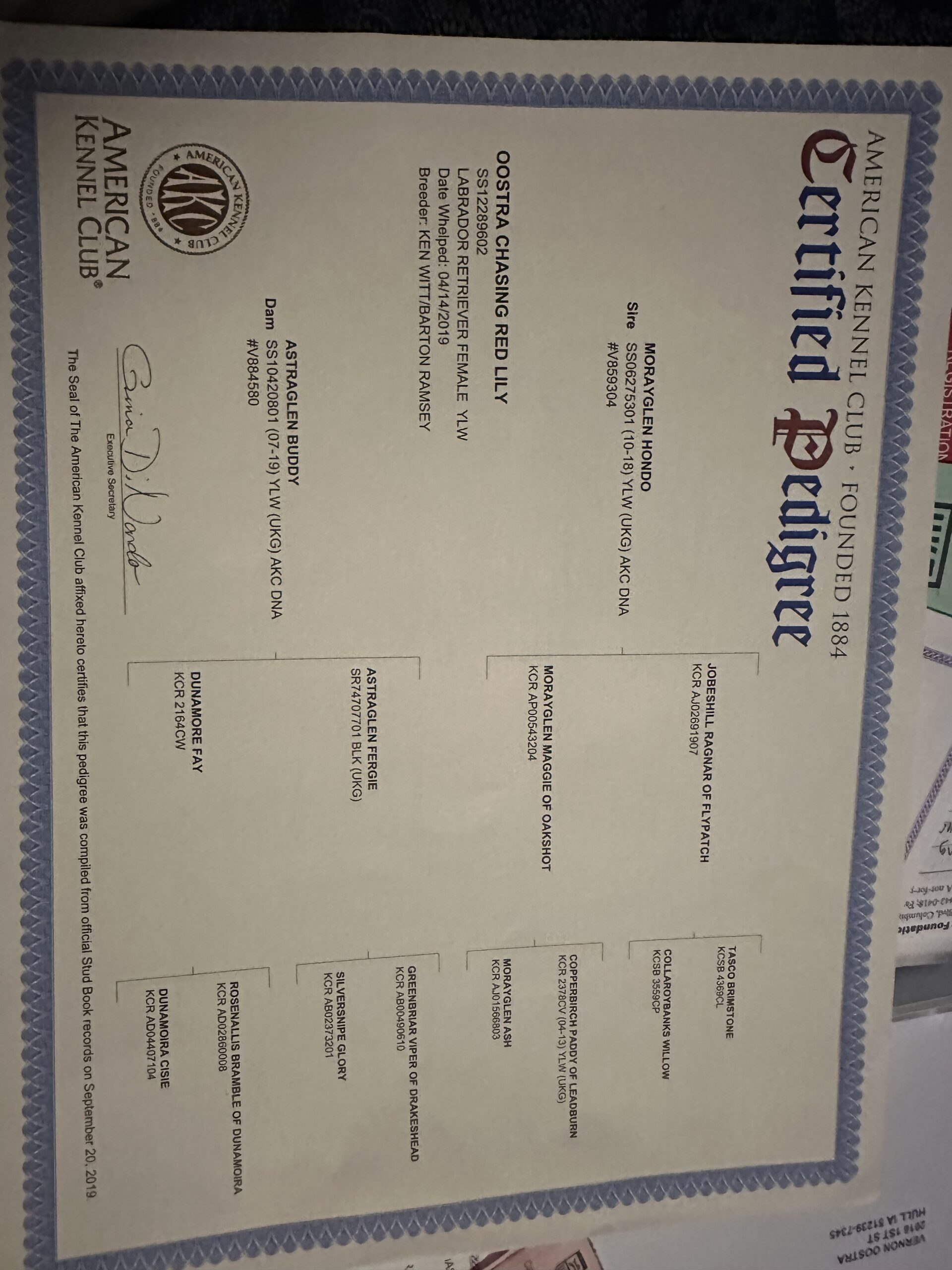 Lily is an absolute sweet heart that loves to hang out with you on the coach. However, when she comes to the field watch out because she is an absolute monster hi energy hard charging dog. She is the definition of a team player and does very well handling and marking. She has earned her HRCH title. She is a very good marking dog at any distances along with blind retrieves. She is very good around kids and even babies as she will try to snuggle on their laps if you allow it. Sahe has a great off switch for the house and office too. She has hunted upland and waterfowl. Many people are surprised that the energy in the field that she has because she has very calm attitude when not working