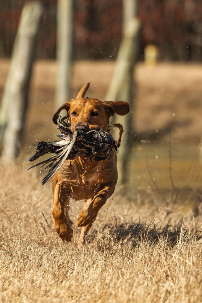 Rhett is a 65-pound powerhouse of muscle, perfectly suited for both home life and the hunting blind. His exceptional drive to retrieve is matched only by his eagerness to please. With impeccable obedience and handling skills, Rhett approaches retrieving with unmatched speed and determination. His favorite pastime is duck hunting with his dad out west. When he’s not hunting or training, Rhett enjoys being a full-time family companion cuddling at home, relaxing on the beach, or accompanying his dad on hunting trips.