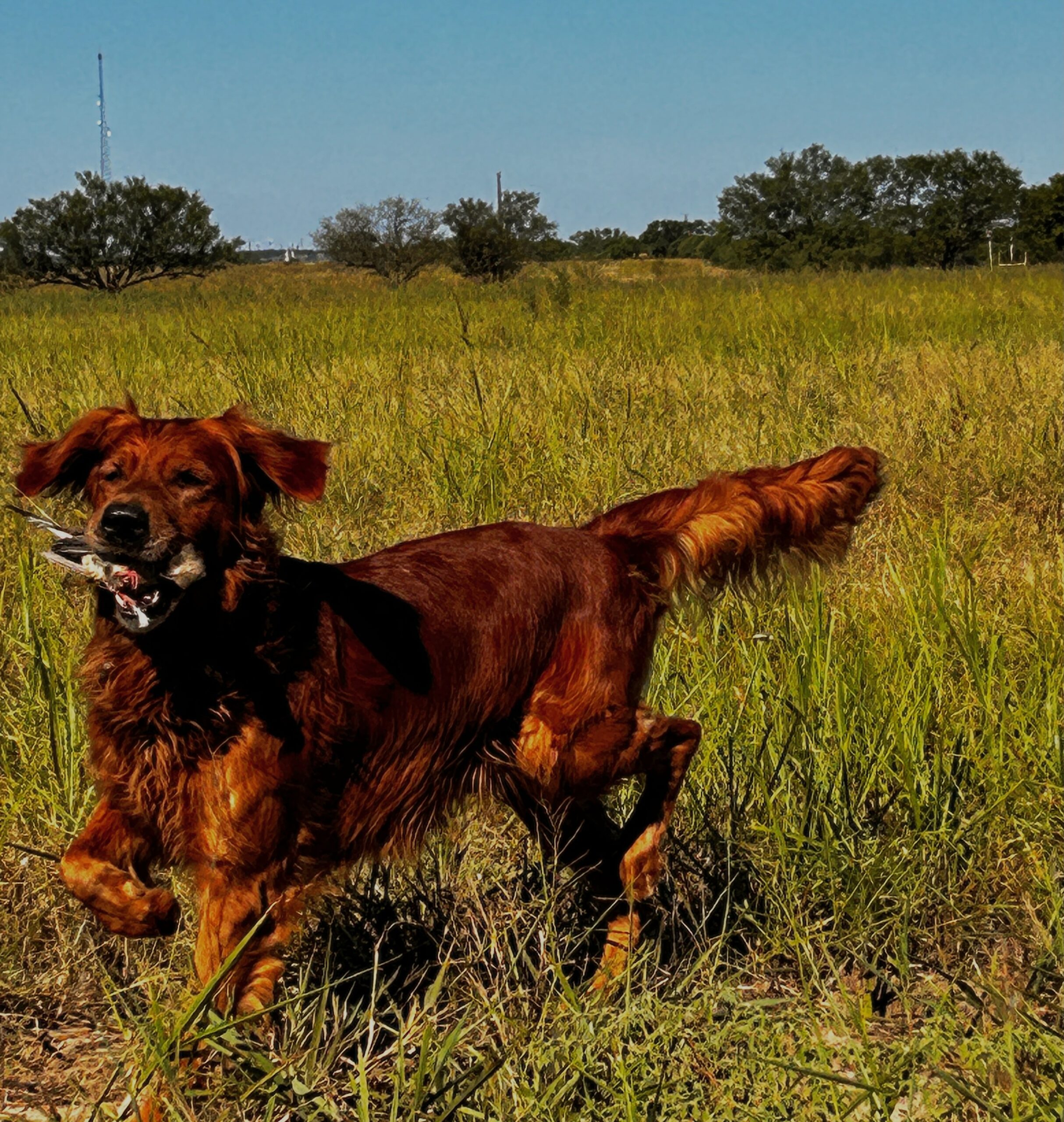 Findlay boasts a world class pedigree. Both sire and dam are consumate field dogs. His sire, Decatur Island Gold’s Last Grizzly (Griz) has earned his Senior Hunt Title and is the son of Semper Cooper’s Mulligan MH QA2 *** CCA, a successful Field Trial competitor. His dam, Red River Tala of WM Farms (Tala) is a third generation member from the NDC NMFR Rock Erin Red River Ruckus *** OS line. Findlay is also the great grandson of the ultimate Who’s Who of golden retrievers FC AFC OTCH FTCH AFTCH Can MOTCH TNT’s Stanley Steamer UDX WCX Can MH OBHF FDHF OS. The only dog to achieve 4 Championship FIELD TRIAL TITLES plus Am & Can OTCH titles by 5 years of age! Dark red flat field coat with beautiful blond feathering, dark eyes, beautiful head, extremely athletic, muscular, great attitude, outstanding nose, loves to hunt. Has an excellent temperament, loves to please, loves people and other animals. Findlay is smart, gentle and also fit and healthy.